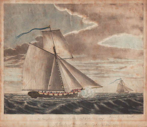 The Greyhound Excise Cutter, Capt Wm. Watson — on a Wind, Chasing — T. Soutter (1794)
