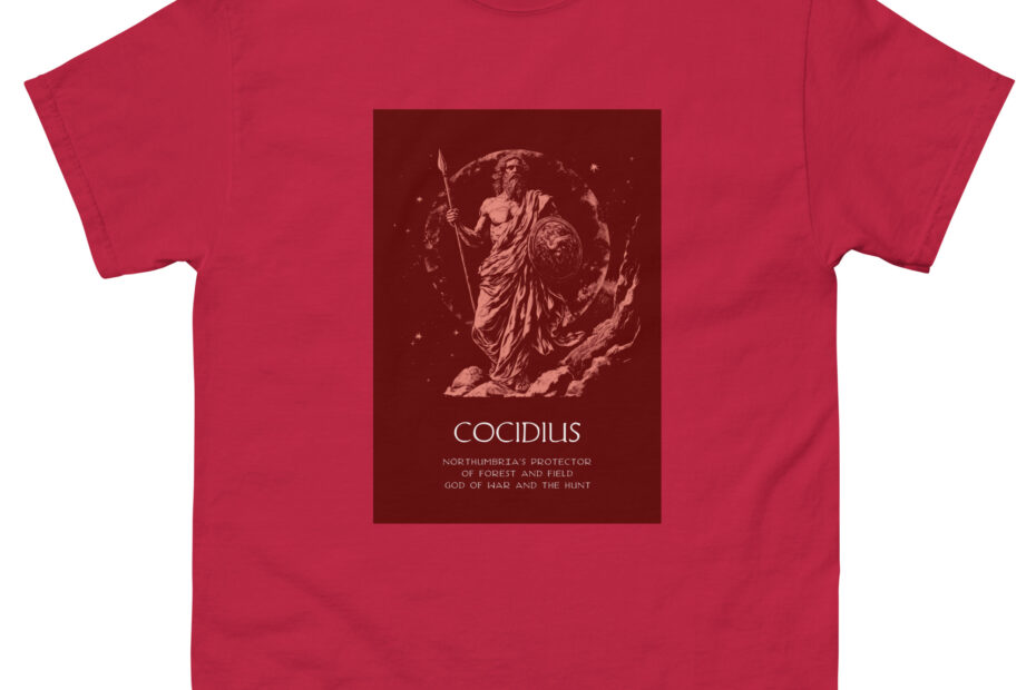 TheĀ Cocidius Northumbrian God T-Shirt features a striking design inspired by Cocidius, the ancient Northumbrian god of war and hunting. Crafted from soft, high-quality cotton, this t-shirt showcases a bold graphic of the deity, combining historical intrigue with modern style. Perfect for those fascinated by ancient mythology or the rich history of Northumberland, this shirt offers both comfort and a unique connection to the region’s ancient past.