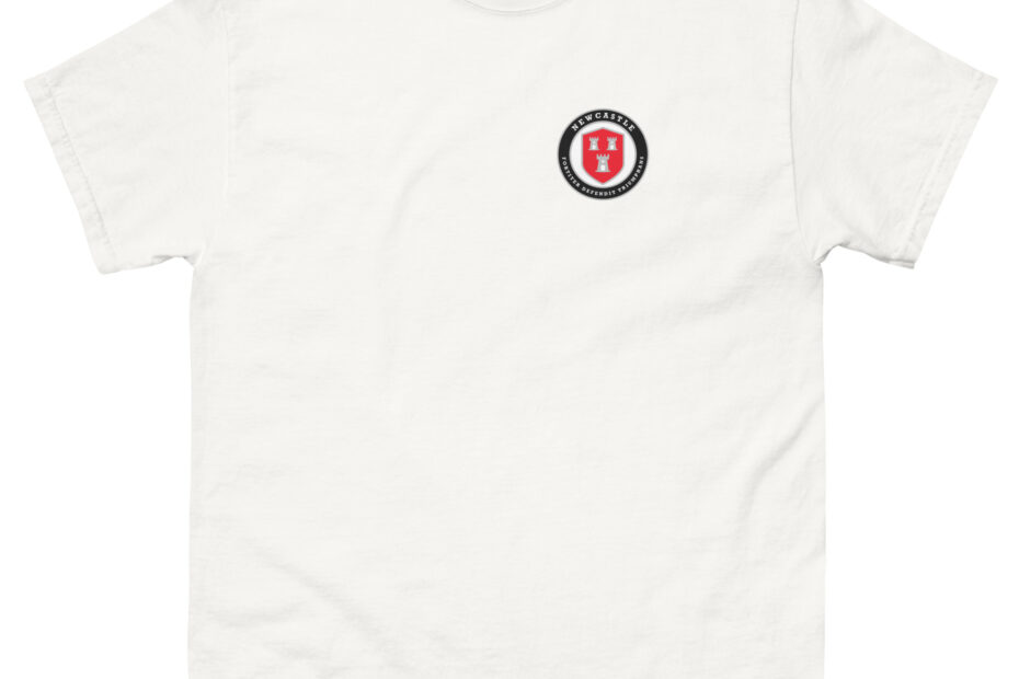 Featuring the crest of Newcastle with three silver castles on a bright red shield above the Latin motto: Fortiter Defendit Triumphans – Triumph Through Strong Defence.
